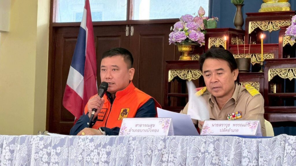 ข้อมูลพื้นที่เพาะปลูกและคาดการณ์ปริมาณเศษวัสดุทางการเกษตร ข้อมูลพื้นที่เสี่ยง การใช้ประโยชน์เศษวัสดุทางการเกษตร และแผนเผชิญเหตุและการปฏิบัติงานแก้ไขปัญหาการเผาในพื้นที่การเกษตร ณ หอประชุมอำเภอบางบัวทอง ตำบลละหาร อำเภอบางบัวทอง จังหวัดนนทบุรี