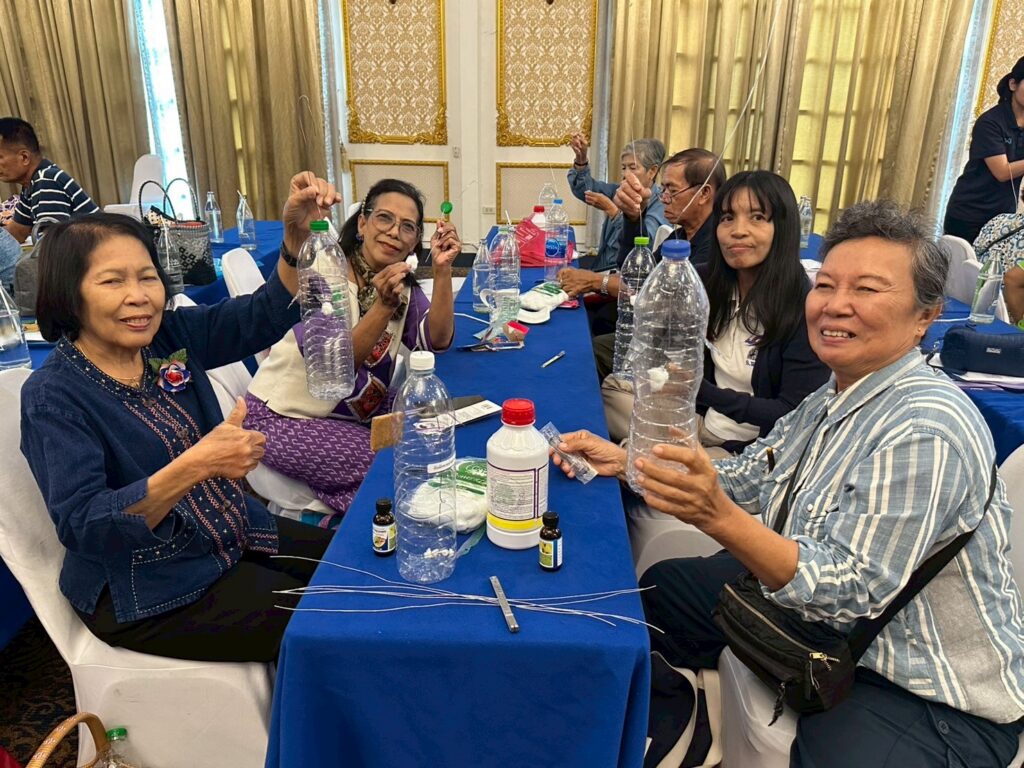 3. บรรยายและสาธิตการจัดการสวนไม้ผลคุณภาพ โดย วิทยากรจากสำนักงานเกษตรจังหวัดนนทบุรี และสำนักงานเกษตรอำเภอบางบัวทอง ได้แก่ การตัดแต่งกิ่งไม้ผลให้ถูกวิธี เทคนิคการห่อผลป้องกันศัตรูพืช การจัดการไม้ผลหลังการเก็บเกี่ยว และการฝึกปฏิบัติการทำกับดักแมลงวันผลไม้ ซึ่งผู้เข้าร่วมอบรมได้ลงมือปฏิบัติจริง เพื่อให้สามารถนำไปใช้ในแปลงของตนเองได้ทันที