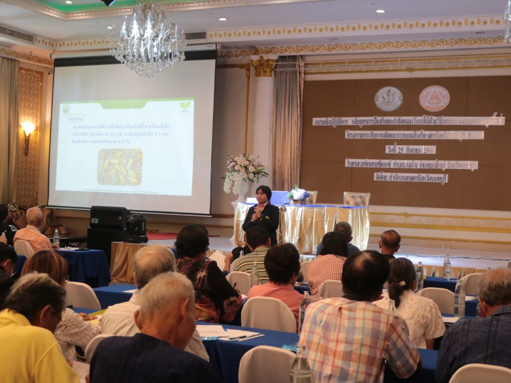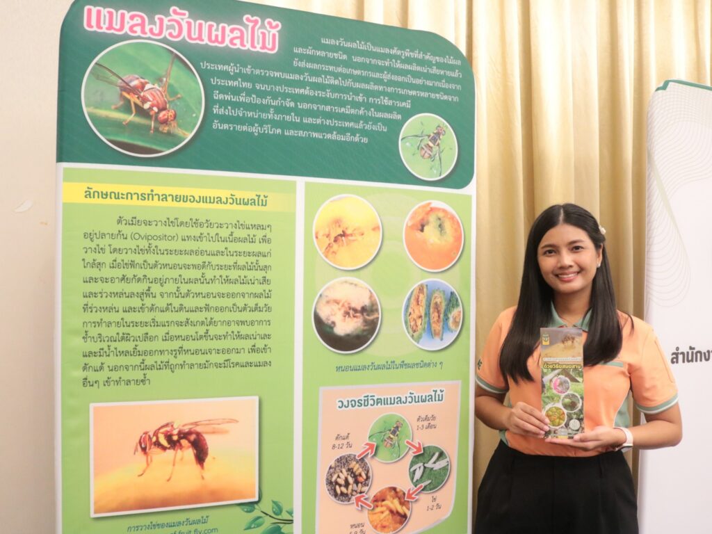 1. การป้องกันและกำจัดแมลงวันผลไม้ด้วยวิธีผสมผสานแบบครอบคลุมพื้นที่ โดย นางสาวสัญญาณี ศรีคชา นักกีฏวิทยาชำนาญการพิเศษ สำนักวิจัยพัฒนาการอารักขาพืช กรมวิชาการเกษตร วิทยากรผู้เชี่ยวชาญได้ถ่ายทอดความรู้เกี่ยวกับเทคนิคและวิธีการป้องกันแมลงวันผลไม้อย่างมีประสิทธิภาพ โดยใช้วิธีผสมผสานที่ครอบคลุมพื้นที่กว้าง เพื่อให้การควบคุมมีประสิทธิผลสูงสุดและลดการใช้สารเคมี