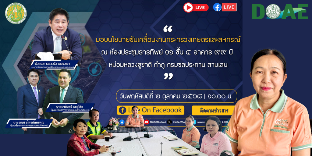 วันที่ 2 ตุลาคม 2568 นางพลัศริญญา อมรพันธุ์ศักดิ์ เกษตรจังหวัดนนทบุรี พร้อมด้วยหัวหน้ากลุ่มทุกกลุ่ม เข้าร่วมประชุมมอบนโยบายขับเคลื่อนงานกระทรวงเกษตรและสหกรณ์ ผ่าน Facebook Live ของกระทรวงเกษตรและสหกรณ์ ณ ห้องประชุมสำนักงานเกษตรจังหวัดนนทบุรี ชั้น 2 อำเภอเมืองนนทบุรี จังหวัดนนทบุรี โดยมีร้อยเอกธรรมนัส พรหมเผ่า รองนายกรัฐมนตรี และรัฐมนตรีว่าการกระทรวงเกษตรและสหกรณ์ เป็นประธาน ฯ พร้อมด้วยนายอามินทร์ มะยูโซ๊ะ รัฐมนตรีช่วยว่าการกระทรวงเกษตรและสหกรณ์ นายนเรศ ธำรงค์ทิพยคุณ รัฐมนตรีช่วยว่าการกระทรวงเกษตรและสหกรณ์ และคณะผู้บริหารกระทรวงฯ เข้าร่วมประชุม ฯ ซึ่งจัดขึ้น ณ ห้องประชุมธารทิพย์ 01 ชั้น 4 อาคาร 99 ปี หม่อมหลวงชูชาติ กำภู กรมชลประทาน สามเสน กรุงเทพมหานคร