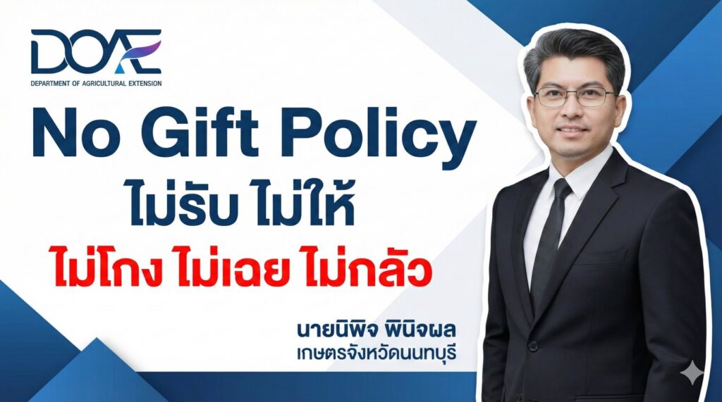 ประกาศสำนักงานเกษตรจังหวัดนนทบุรี เรื่อง นโยบายการไม่รับของขวัญและของกำนัลทุกชนิดจากการปฏิบัติหน้าที่ (No Gift Policy) ประจำปีงบประมาณ พ.ศ. 2569By admin_doae / 22 มกราคม 2026 ประกาศ No Gift Policy ประจำปีงบประมาณ พ.ศ. 2569ดาวน์โหลด