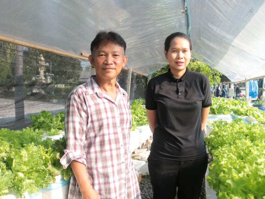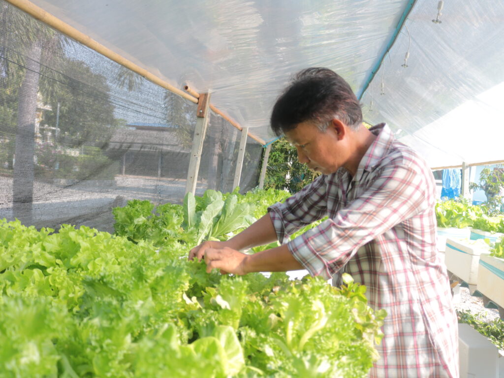 ระบบพ่นหมอกในโรงเรือน เกษตรกรได้เปิดใช้ระบบพ่นหมอกในโรงเรือนทุกวันช่วงเวลาเช้า 5-10 นาที เพื่อควบคุมอุณหภูมิและความชื้นให้เหมาะสม ผลที่ได้คือใบผักสลัดมีความหนา ใหญ่ และเป็นทรงพุ่มมากขึ้น ส่งผลต่อคุณภาพของผลผลิตที่ดีขึ้นอย่างเห็นได้ชัด