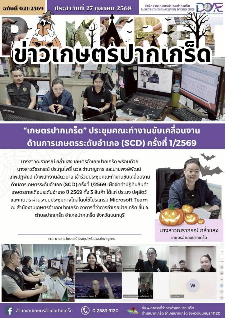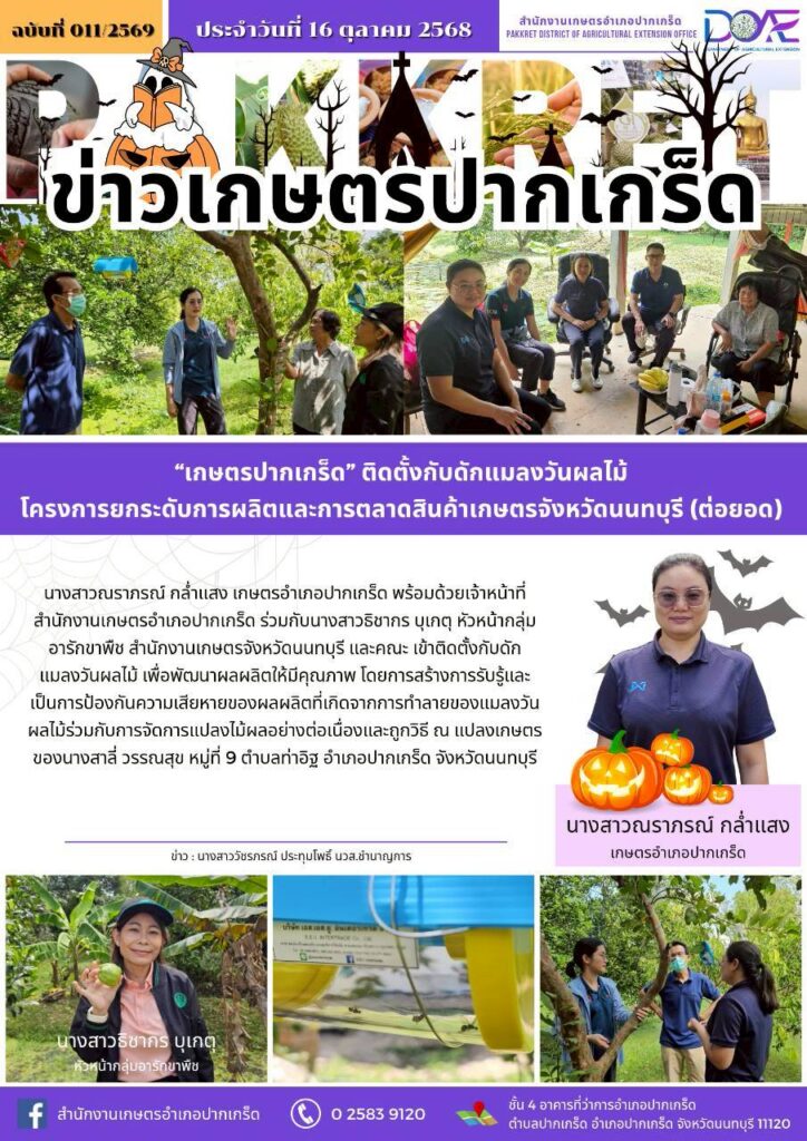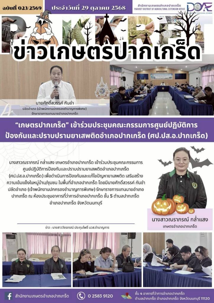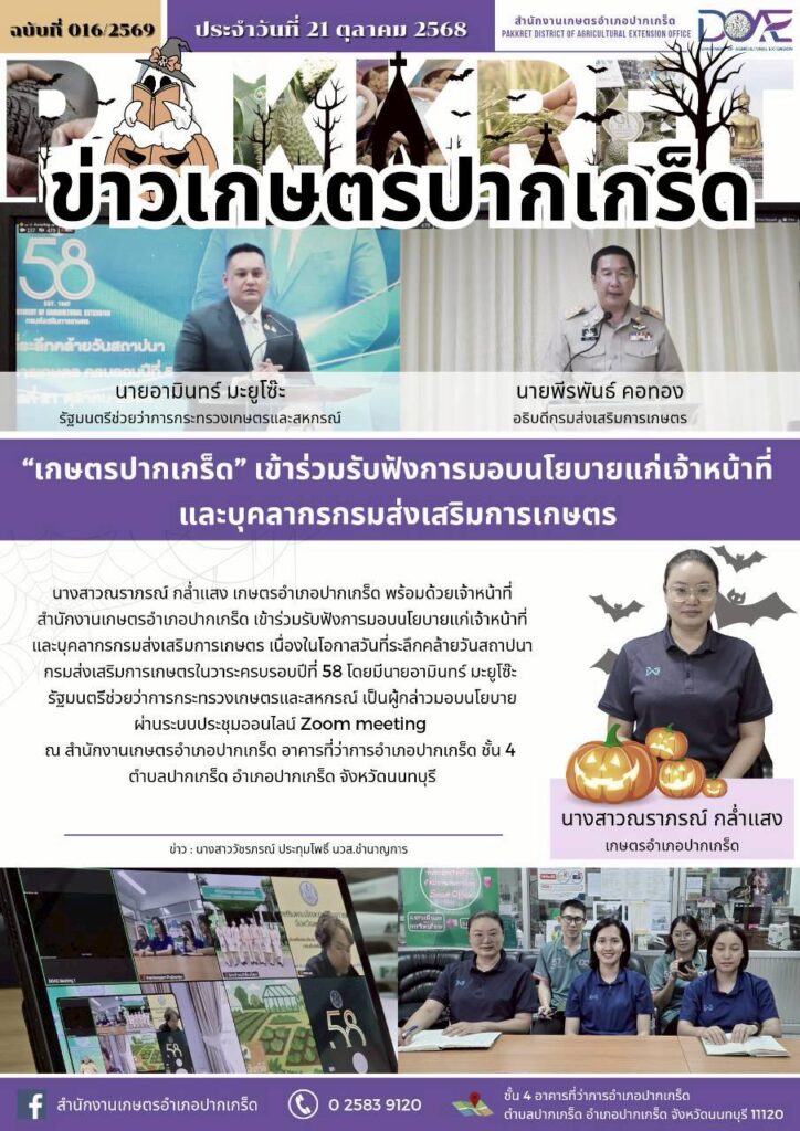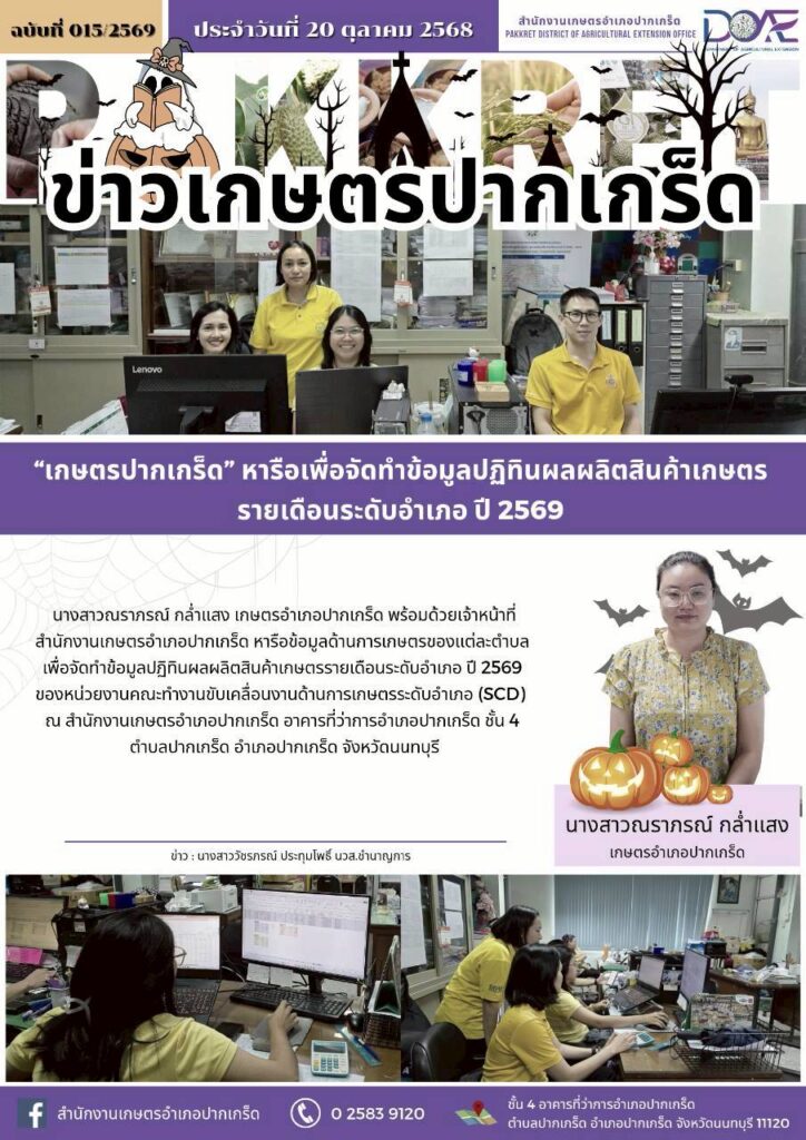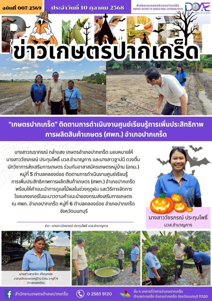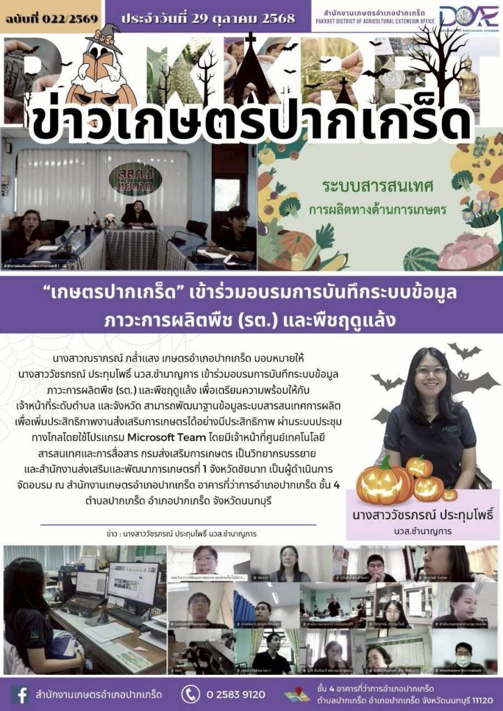 สรุปข่าวประจำเดือนตุลาคม 2568By admin_pakkret / 18 พฤศจิกายน 2025 ภาพ/ข่าว : นางสาววัชรภรณ์ ประทุมโพธิ์ นักวิชาการส่งเสริมการเกษตรชำนาญการ
