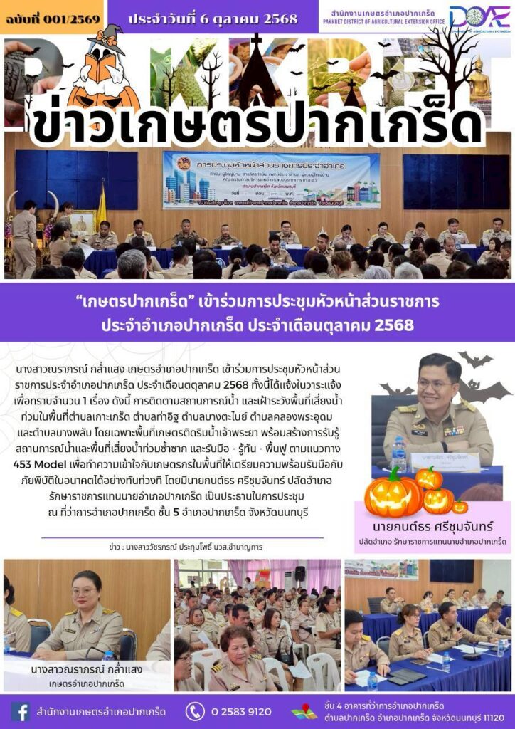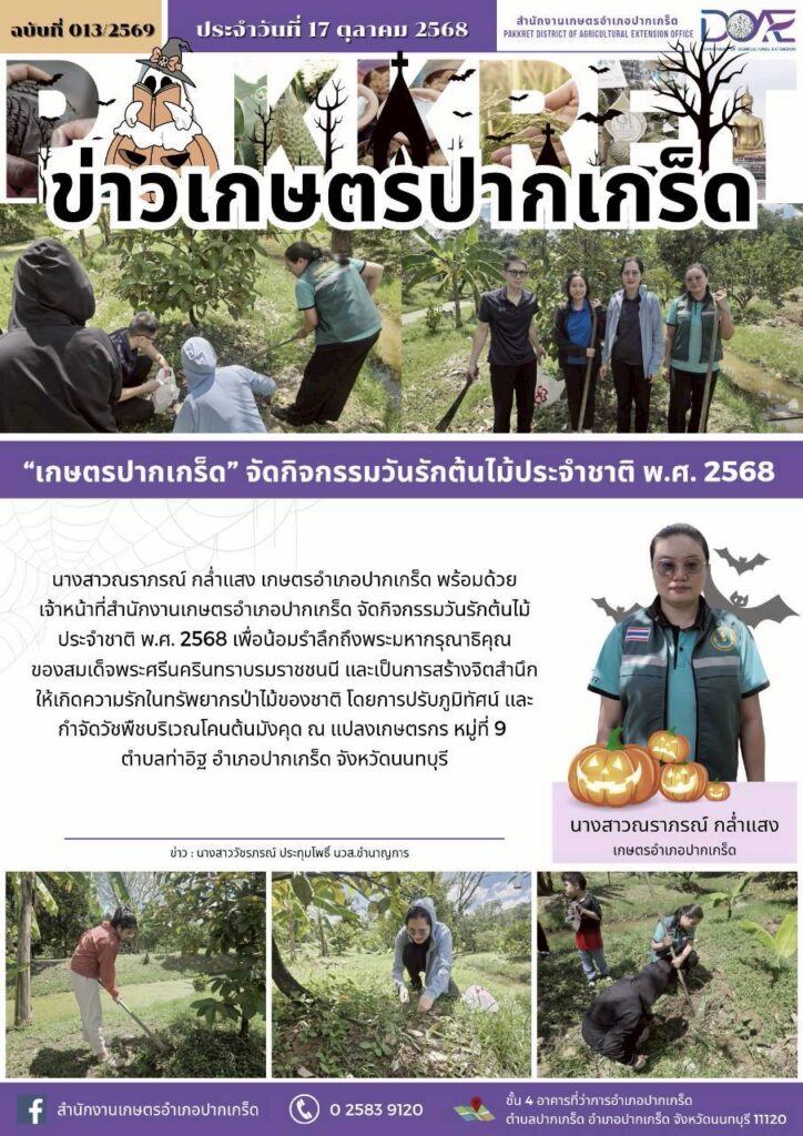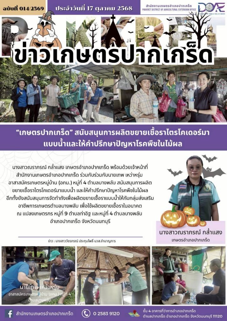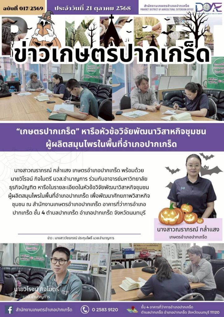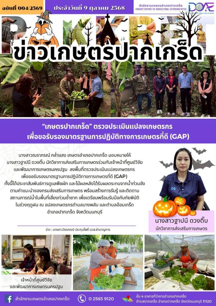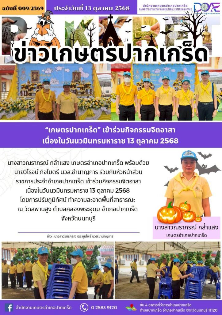 สรุปข่าวประจำเดือนตุลาคม 2568By admin_pakkret / 18 พฤศจิกายน 2025 ภาพ/ข่าว : นางสาววัชรภรณ์ ประทุมโพธิ์ นักวิชาการส่งเสริมการเกษตรชำนาญการ