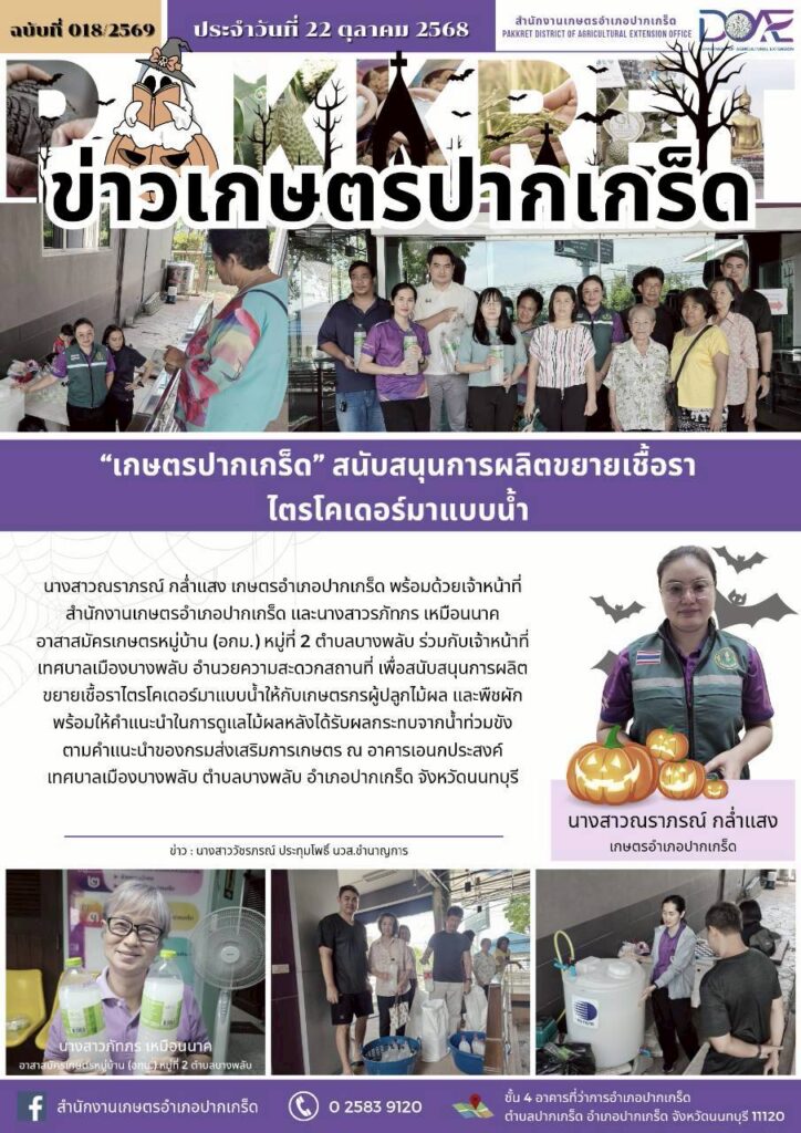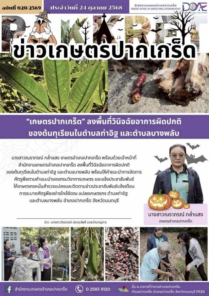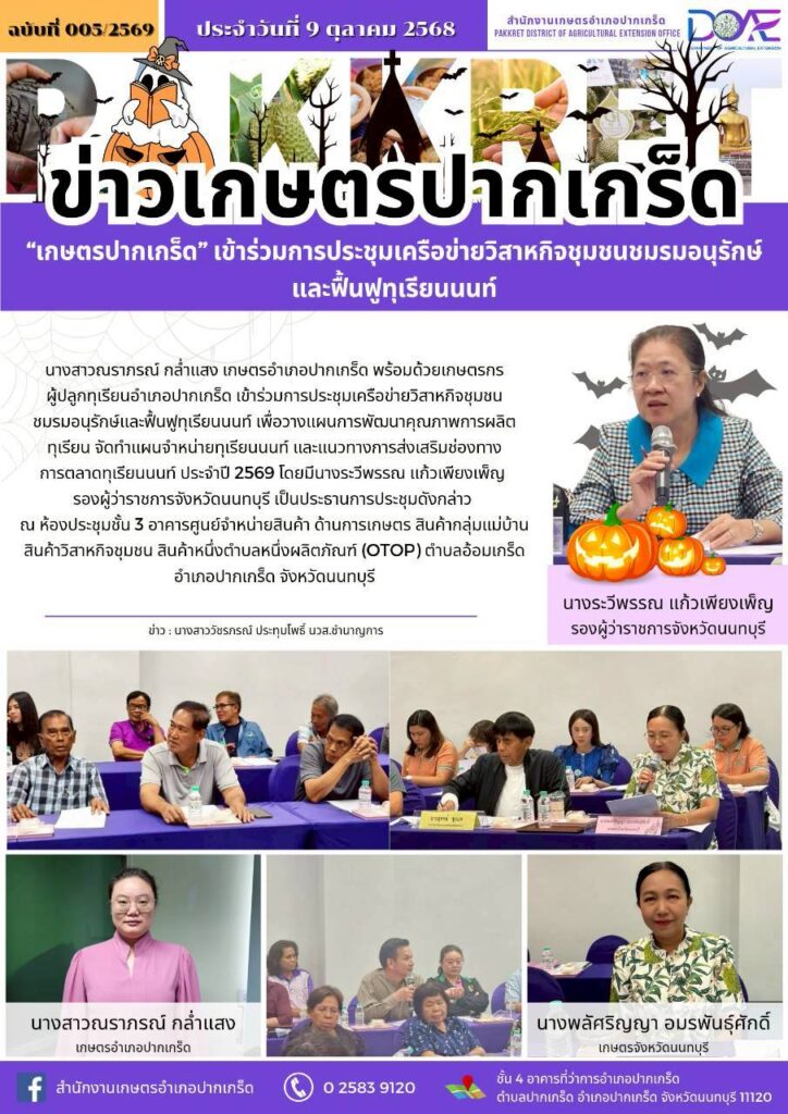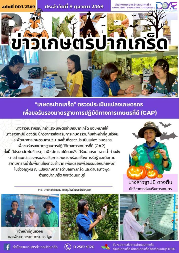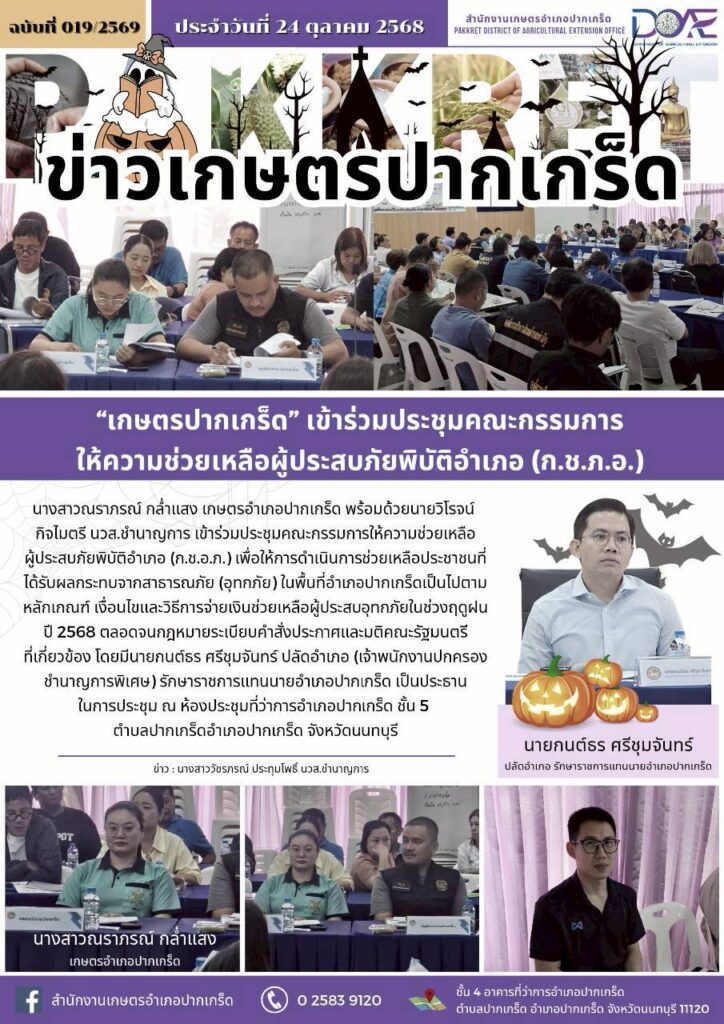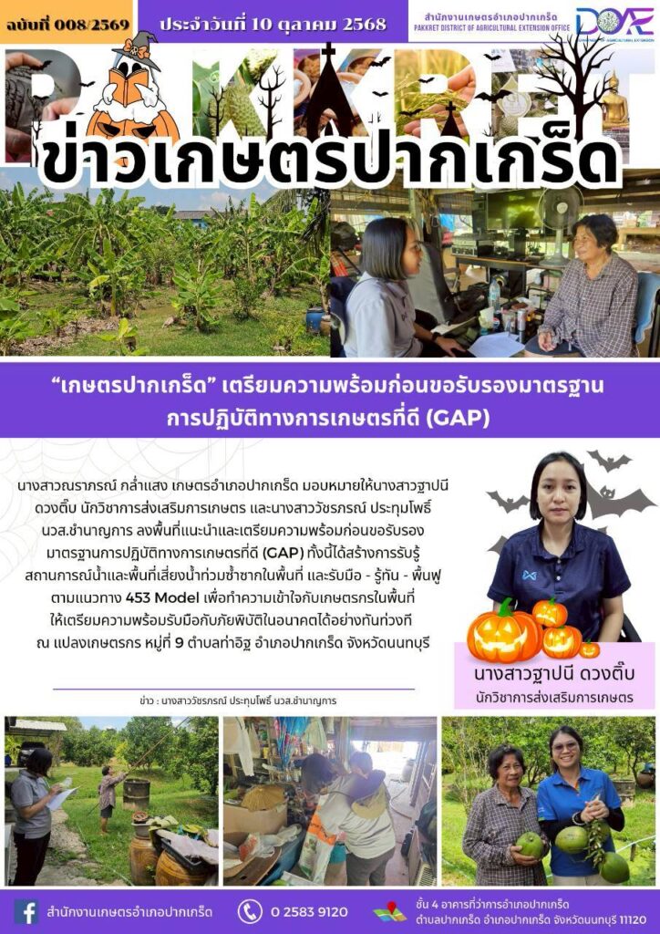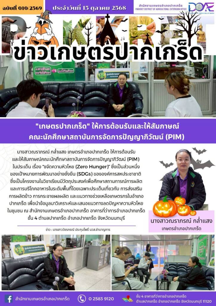 สรุปข่าวประจำเดือนตุลาคม 2568By admin_pakkret / 18 พฤศจิกายน 2025 ภาพ/ข่าว : นางสาววัชรภรณ์ ประทุมโพธิ์ นักวิชาการส่งเสริมการเกษตรชำนาญการ